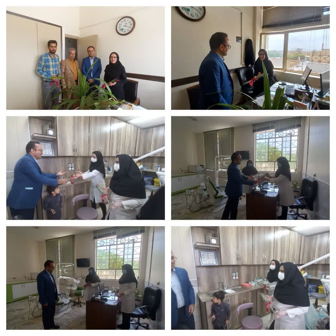 به مناسبت روز دندانپزشک رئیس مرکز بهداشت شهرستان یزد با حضور در واحد دندانپزشکی و مراکز خدمات جامع سلامت شهید فرساد و اکبری ۲ از همکاران واحد دندانپزشکی و دندانپزشکان آن مراکز با اهدای شاخه گل قدردانی نمود .