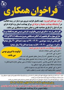 - کارشناس ارشد /دکترای شیمی با اولویت گرایش شیمی تجزیه (فقط مرد)