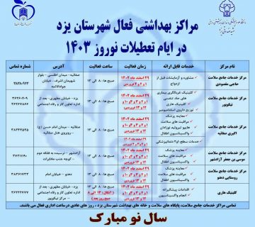 به اطلاع شهروندان محترم می رساند؛ کلینیک درمان پیشگیرانه هاری(حیوان گزیدگی) مرکز خدمات جامع سلامت نیکوپور در ساعات غیراداری و روزهای تعطیل به اورژانس بیمارستان شهید دکتر رهنمون واقع در خیابان فرخی انتقال یافت.