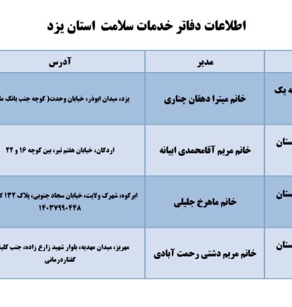 دفاتر خدمات سلامت استان یزد